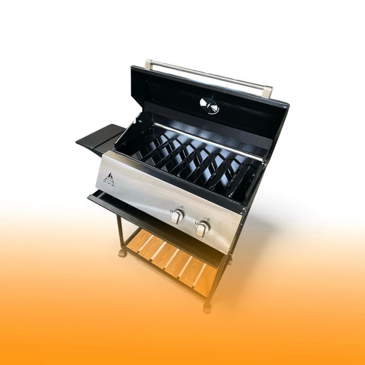 دارای ۷ عدد ناودانی استیل و شلف گریل برای پخت غذای رژیمی و میز کار ۳۰ سانتی فلزی قابل استفاده در هر طرف باربیکیو