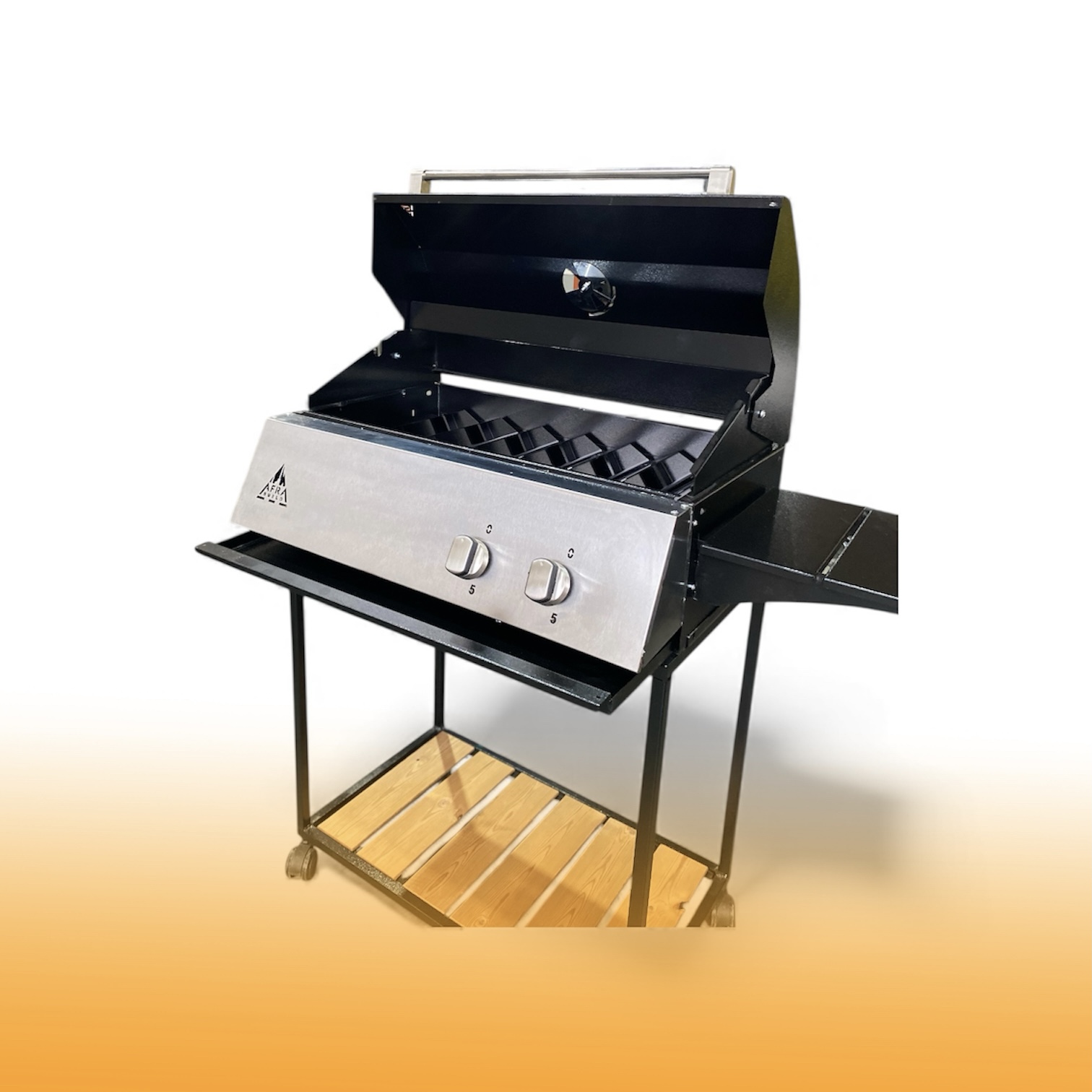 دارای ۷ عدد ناودانی استیل و شلف گریل برای پخت غذای رژیمی و میز کار ۳۰ سانتی فلزی قابل استفاده در هر طرف باربیکیو