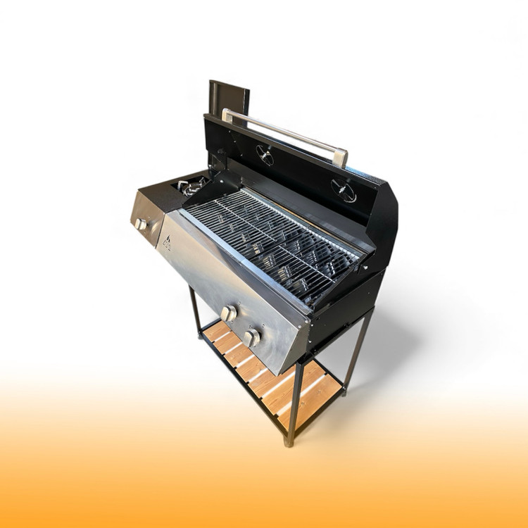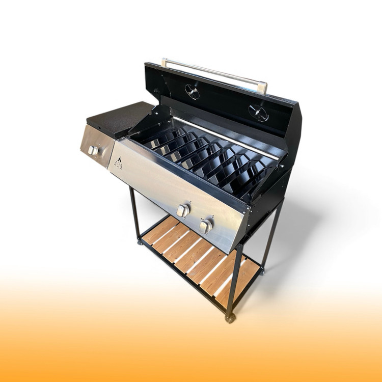 دارای ۸ عدد ناودانی استیل و شلف گریل برای پخت غذای رژیمی و میز کار ۳۰ سانتی فلزی قابل استفاده در هر طرف باربیکیو