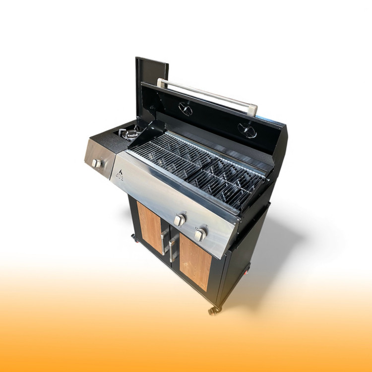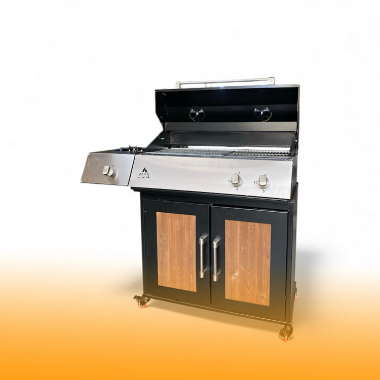 باربیکیو ۸۰ سانت گازی با کابینت درب استیل و چوب ترمو