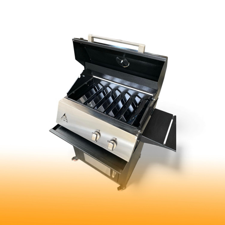 دارای ۶ عدد ناودانی استیل و شلف گریل برای پخت غذای رژیمی و میز کار ۳۰ سانتی فلزی قابل استفاده در هر طرف باربیکیو